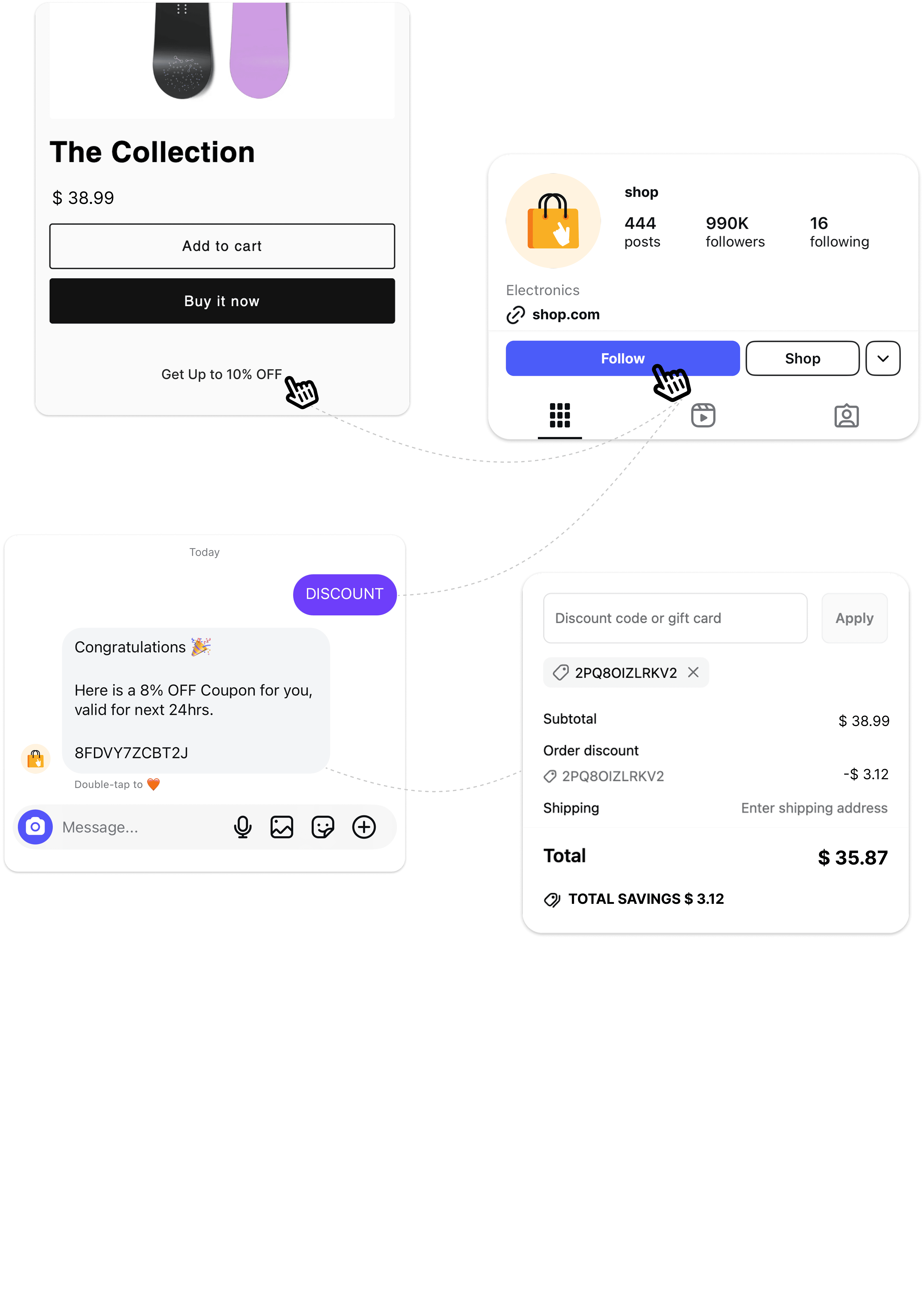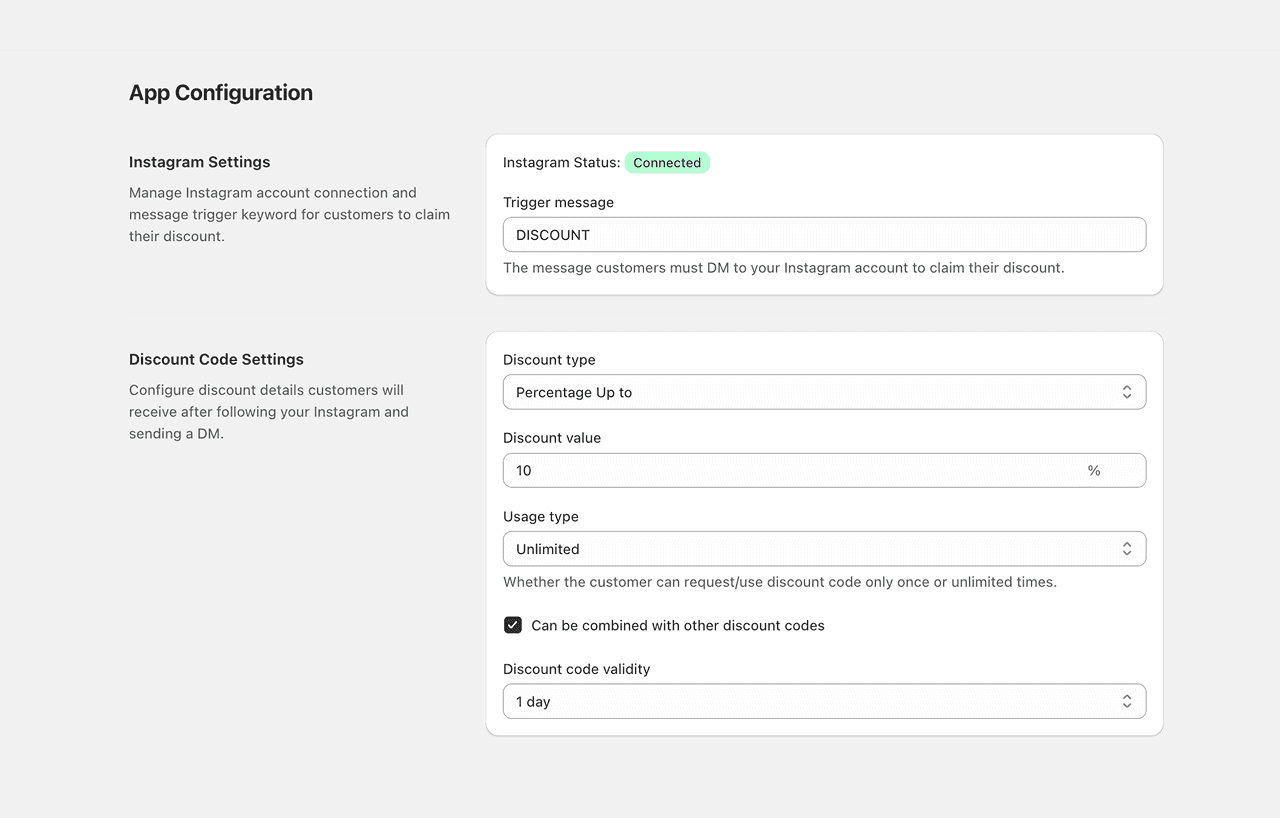 Automatically send discount codes to followers who DM your store’s Instagram. No extra work — it’s all handled in real-time.